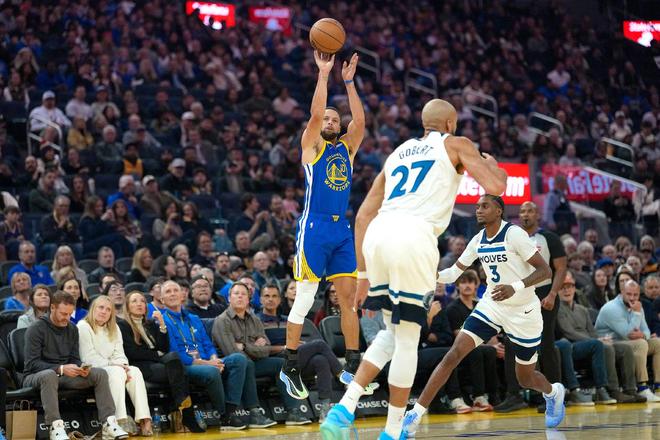 畢竟這家伙,自帶復出Buff。值得一提的是,面對今天的對手森林狼,庫里穿上了對面核心愛德華茲的球鞋。但問題是,今天愛德華茲休戰了。甚至,愛德華茲的替補海蘭德在首節比賽中也遭遇膝蓋挫傷退賽。所以一時間,場上的的對陣變得非常奇怪。森林狼那邊全是大個子,鋒線群儲備異常兇猛。勇士隊則全是小個子,極致的五小對陣極致的五大。不過,雖然身高有差距,但勇士隊有庫里?。”荣愐婚_始,就是庫里先聲奪人幫助勇士隊取分,手感來得很快。很快,庫里的三分也來了,個人連得8分。庫里滾燙的手感,讓森林狼不得不火速調整一下防守策略。