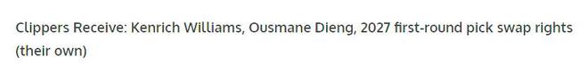 不過露天看臺表示,快船如果真的決定開啟重建,他們的重建周期至少是兩年,快船肯定是要拿回自己2026年首輪簽和2027年首輪簽互換權的,但是祖巴茨的交易價值可能達不到兩個首輪簽。那么,快船大概率會放棄2030年首輪簽(樂透受保護)+祖巴茨換肯里奇·威廉姆斯、烏斯曼·迪恩、2026年首輪簽(快船)、2027年首輪簽互換權(快船)。這樣一來,快船也不虧,至少真要重建,明年也能趁著選秀大年,挑一個重建基石。