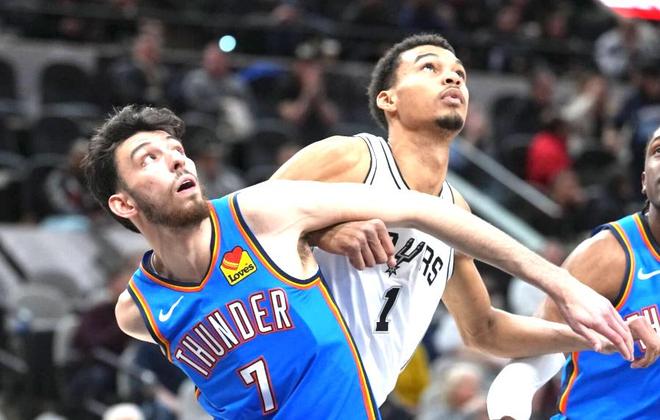 此外,在輸給馬刺的3場比賽中,也能窺見雷霆的短板,內線實力與掘金、馬刺存在差距。圣誕大戰,雷霆坐鎮主場占據“天時地利人和”,圣誕大戰+復仇雙buff加成,雷霆沒有不勝的理由,即便如此,最終他們還是大比分輸掉比賽。這一場,雷霆在內線的得分46-52落后馬刺,防守籃板上雷霆32-39落后馬刺,作為雷霆內線的明顯球員,切特霍姆格倫全場僅僅拿到10分,遠不如替補席出戰的文班亞馬,后者12中6,3分5中2,得到19分11籃板,攻守兩端統治著比賽。而球隊的另一個內線球員哈滕表現不俗得到13分12籃板,但他的藍領屬性無力改變比賽的局勢。