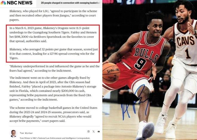 1月16日美國NBC報道,美國聯(lián)邦檢察官已經(jīng)對被控操縱美國大學(xué)生籃球聯(lián)賽和中國男子職業(yè)籃球聯(lián)賽的26人提起訴訟。在26人被起訴名單中,包括了前CBA江蘇隊外援、2022-23賽季得分王安東尼奧-布萊克尼。