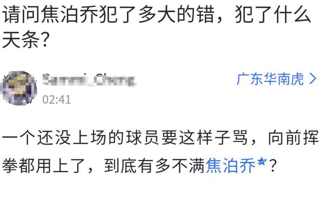 這就有點離譜了,明明是王少杰、杜潤旺防守出現了大空位漏人,杜鋒前腳罵完王少杰,后腳又對前7分鐘比賽一秒沒打的焦泊喬一頓臭罵,十分不可理喻,有球迷在賽后發帖替焦泊喬伸冤:一個還沒上場的球員都要這樣子罵,向前揮拳都用上了,到底有多不滿焦泊喬?焦泊喬是犯了什么天條?
