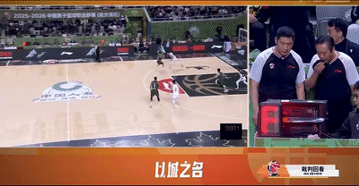 第一節廣東隊上來就被上海的一套內外連線+跑轟反擊直接打懵,第一節進行到還剩3分47秒,廣東隊已經落后上海20分,杜鋒再次準備換人,焦泊喬來到場邊候場。
