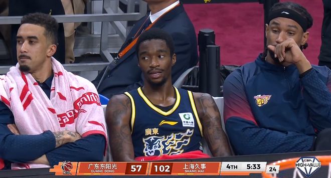 廣東隊這邊呢?全隊上下除了薩姆納得分情況還算可以外,胡明軒、徐杰、奎因、薩林杰全部低迷,全隊三分最準的居然是小將陳家政,而諷刺的是,陳家政前三節完全得不到杜鋒的重用。