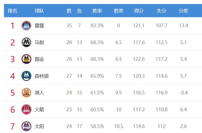 而湖人已經落后森林狼2個勝場了,太陽則領先勇士1.5個勝場,算是差距相對大一些的。