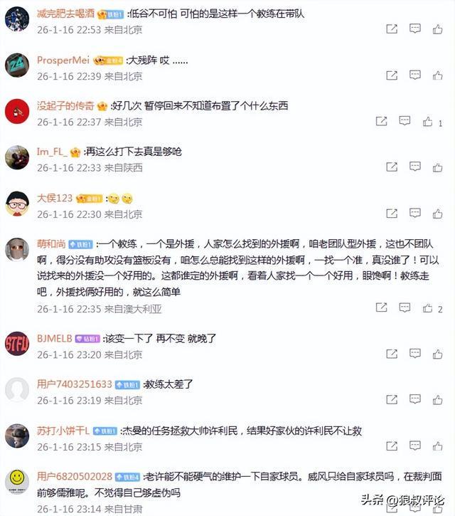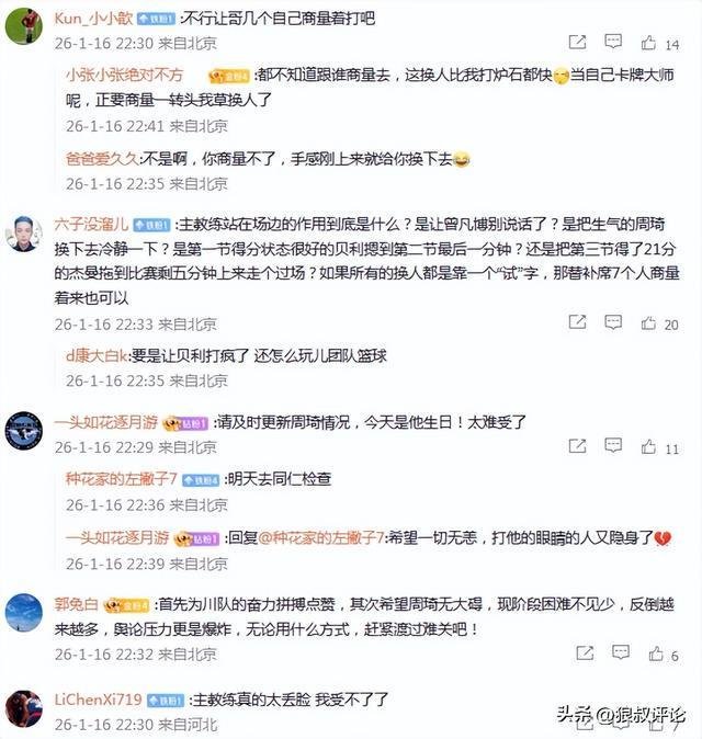 有球迷點評說道:主教練站在場邊的作用到底是什么?是讓曾凡博別說話了?是把生氣的周琦換下去冷靜一下?是第一節得分狀態很好的貝利摁到第二節最后一分鐘?還是把第三節得了21分的杰曼拖到比賽剩五分鐘上來走個過場?如果所有的換人都是靠一個“試”字,那替補席7個人商量著來也可以。