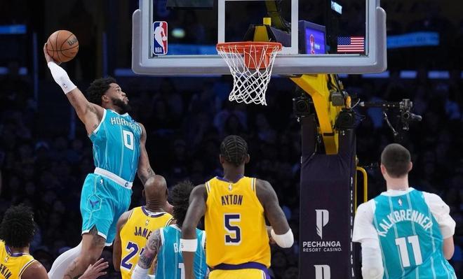 NBA常規(guī)賽,湖人坐鎮(zhèn)主場迎擊黃蜂。本場比賽之前,湖人24勝14負排名西部第5,近段時間他們狀態(tài)起伏不定,里夫斯受傷對球隊打擊還是比較大的,湖人缺乏穩(wěn)定的角色得分點,進攻端太依賴詹姆斯東契奇雙核心了,與此同時,他們的防守也不太行,進攻效率聯(lián)盟第7,防守效率卻只有聯(lián)盟第23,場均蓋帽聯(lián)盟倒數(shù)第3。東契奇防守習慣不好總愛抱怨,老詹老了,里夫斯天賦有限,防守可能會成為湖人季后賽取得突破的阻礙。另一邊的黃蜂隊,本場比賽之前,14勝26負排名東部第12,作為魚腩隊之一,黃蜂實力有限,陣容也都是年輕球員。