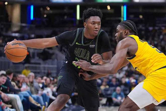 鵜鶘上一場主場116-113險勝籃網,步行者上一場主場101-115輸給猛龍,本賽季首次交鋒鵜鶘主場128-109大勝步行者。本場鵜鶘缺少穆雷、瓊斯、阿爾瓦拉多,步行者缺少哈利伯頓、馬瑟林與托平。首節前4分多鐘,雙方交替領先纏斗至15-15,并在之后繼續拉鋸至25-25,鵜鶘連得4分。謝潑德三分追分,鵜鶘連得4分,沃克三分命中,首節結束鵜鶘33-31領先步行者。首節鵜鶘22中14超過6成準星,其中三分7中4,錫安5中5得到11分與墨菲8分;步行者29中12,其中三分13中5,西亞卡姆6中5得到13分。