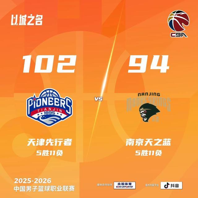 易邊再戰,天津男籃球員林庭謙連中兩記三分扳平比分,南京同曦立即叫出暫停調整。三節打完,天津男籃77-68又把比分追了回來并拿下接近10分的優勢。末節決戰,鄔挺嘉找回手感底角三分命中,賴俊豪內切上籃,馬內克三分再中。不過,主場作戰的天津男籃還是憑借第三節建立起的優勢,以102-94的比分戰勝南京同曦。