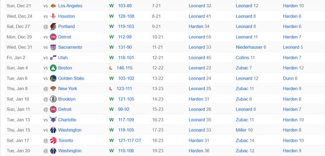 在全明星投票結束的消息后,哈登帶領快船隊110-106擊敗奇才豪取六連勝再度成為西部第十進入附加賽,哈登用這場比賽打臉了那些投票的NBA球員,因為他才是快船的基本盤,就算萊昂納德傷停他也可以帶隊取得勝利。