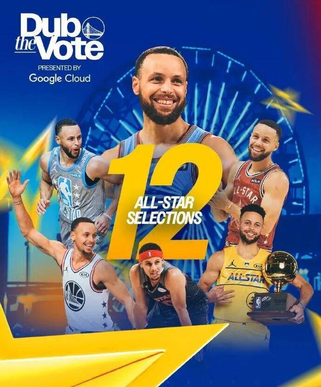 庫(kù)里生涯第12次入選全明星,繼續(xù)刷新勇士隊(duì)史紀(jì)錄,這有可能也是庫(kù)里生涯最后一次全明星首發(fā)。