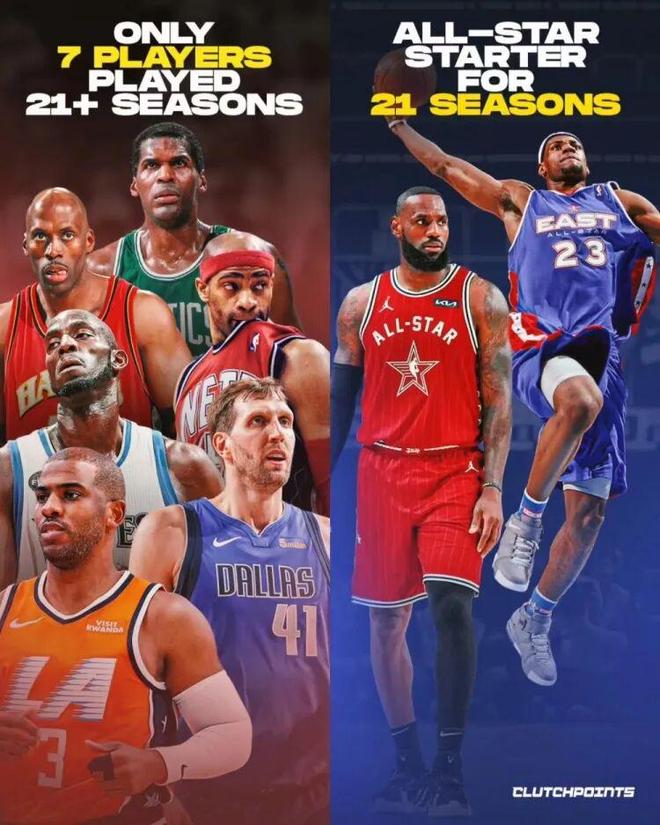 自此之后,詹姆斯連續(xù)21年全明星首發(fā),你要知道歷史上只有7個(gè)人打了超過(guò)21個(gè)NBA賽季