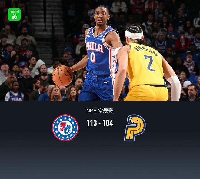 第四節76人馬克西拿下14分,步行者西亞卡姆拿下11分,最終76人113-104戰勝步行者
