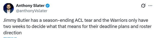 北京時間1月20日,金州勇士的球星巴特勒右膝前交叉韌帶撕裂,遭遇賽季報銷級重傷。這一突發狀況,也讓這支球隊的未來發展方向徹底蒙上了一層迷霧。勇士隊記Slater帶來了關于此事的更多報道——