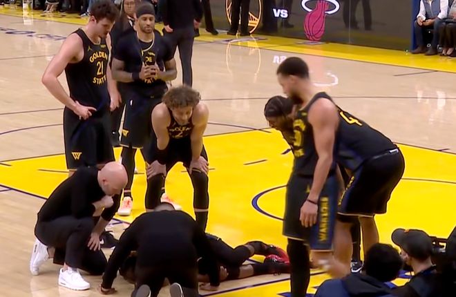巴特勒的受傷發生在第三節還剩7分41秒。當時他在禁區中路躍起接隊友傳球,與熱火隊后衛達維昂-米切爾發生身體對抗,落地時右膝明顯出現扭轉,隨即痛苦地摔倒在地。