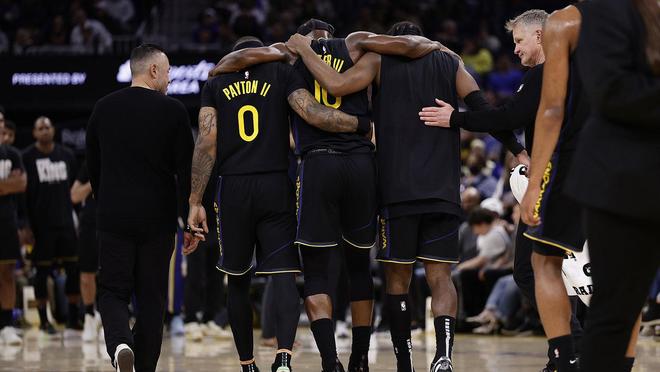 寂靜無聲的蔡斯中心球館里,球迷們垂頭喪氣地看著勇士球員們圍在巴特勒身邊,巴特勒痛苦地在地板上翻滾,所有人都擔(dān)心這位球隊(duì)的發(fā)動(dòng)機(jī)之一會(huì)遭遇不測。巴特勒在巴迪·希爾德、加里·佩頓二世和喬納森·庫明加的攙扶下離開球場時(shí),仍然不忘開玩笑,努力保持樂觀。然而,他離開球館接受核磁共振檢查時(shí),右腿已經(jīng)無法承受任何重量。
