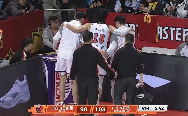接下來,隊醫也是對焦泊喬進行簡單地檢查和治療,最終,焦泊喬被隊友攙扶離場,他離場的時候,我們可以發現,他的左腳完全不能夠落地……