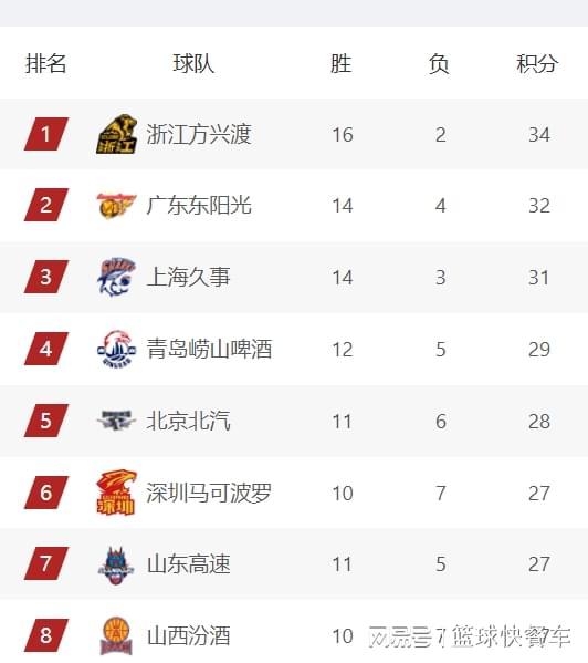 附:CBA積分榜最新排名