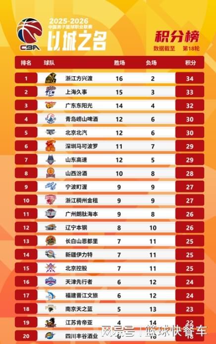 附:CBA積分榜最新排名