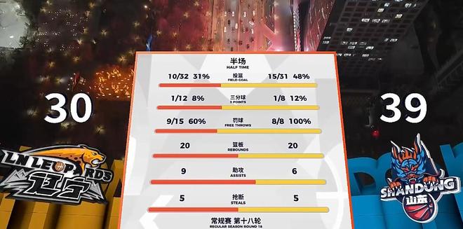 上半場雙方場面比較難看,雙方各種出手打鐵、低級失誤,爭議判罰不少,遼寧半場15罰僅9中,山東8罰8中,兩隊合計三分球20中2,非常鐵,不過山東外援還是強,克里斯鮑威爾后半節反擊+中投+罰球連拿12分,山東一波4分鐘14-5,半場取得39-30領先遼寧。