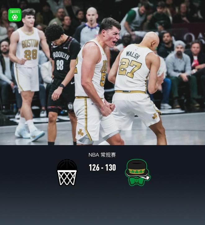 加時賽籃網小波特拿下8分,凱爾特人普里查德拿下8分,最終籃網126-130不敵凱爾特人