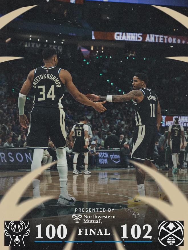 北京時間1月24日,NBA常規賽,雄鹿100-102不敵掘金。掘金是超級殘陣:約基奇、穆雷、布勞恩、佩頓-沃特森和卡梅倫-約翰遜等人都沒打。阿隆-戈登因為腿筋受傷,打了16分鐘提前退賽。掘金幾乎純替補陣容,雄鹿依然輸了。