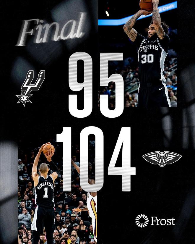 關鍵時刻,馬刺再度陷入得分荒,墨菲率隊打出了13比0的攻勢就此鎖定大局。最終,鵜鶘以104比95險勝馬刺,得以拒絕20分逆轉,也拒絕了本賽季被對手橫掃。