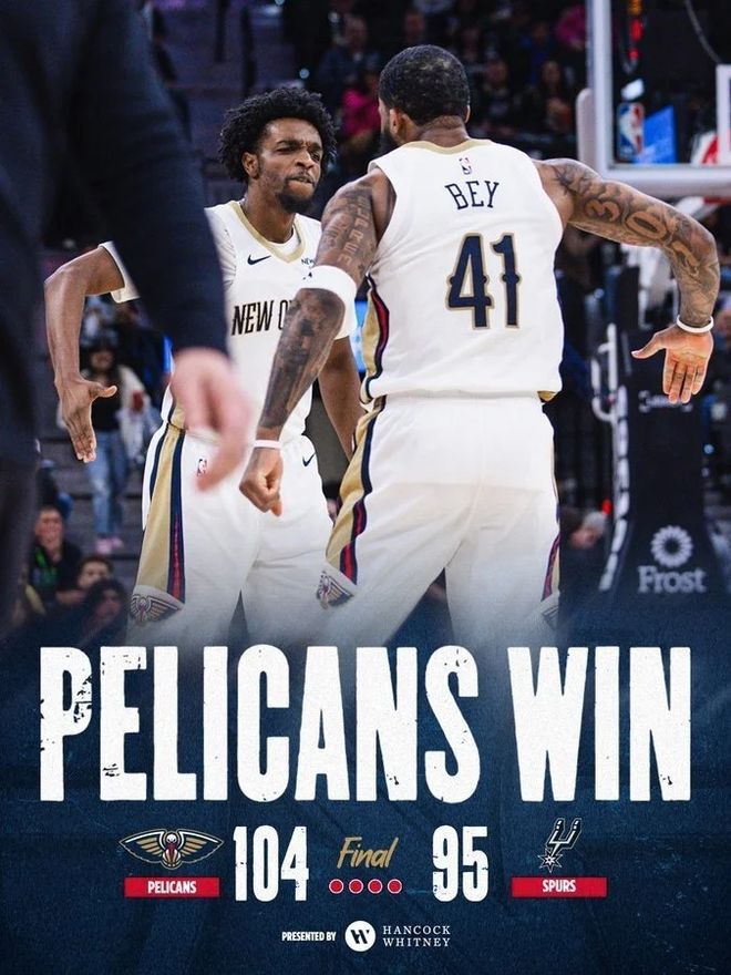 北京時間1月26日,NBA常規(guī)賽馬刺主場對陣鵜鶘,狀元對決文班亞馬遭錫安壓制,馬刺也是被壓制最多時刻落后20分差距。文班亞馬逐步回暖率領(lǐng)馬刺持續(xù)反撲,尤其是在末節(jié)一波流碾壓反超5分,鵜鶘最后階段內(nèi)外開花一波17-3奪回領(lǐng)先優(yōu)勢逆襲,最終馬刺95-104爆冷輸給鵜鶘無緣賽季橫掃,鵜鶘收獲2連勝。