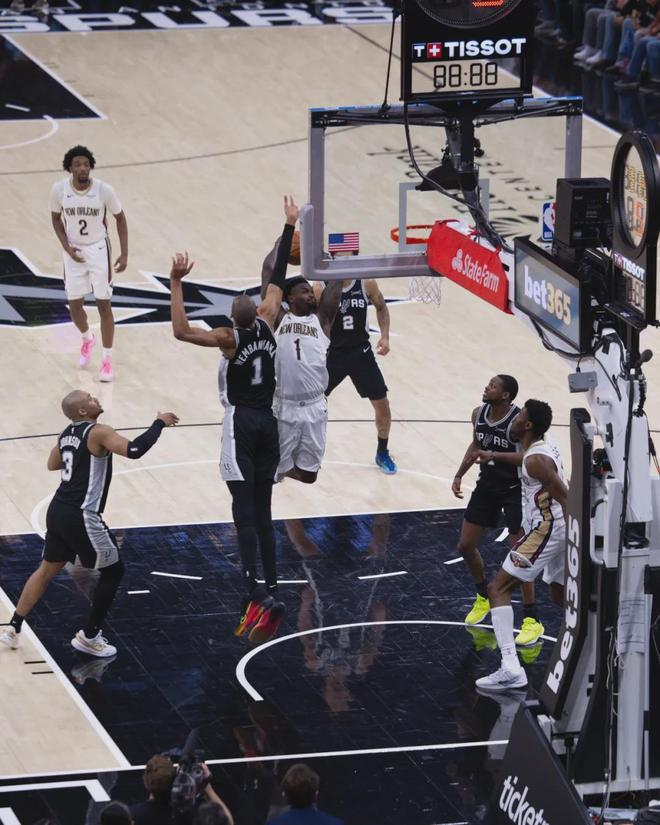 接下來說說馬刺和鵜鶘這一場,鵜鶘籃板球58-46領先馬刺,前場籃板19-10碾壓馬刺。錫安18中10砍下24分10板4助,文班16中6拿到16分16板4帽。過去一個月馬刺只有8勝8負,約老師近一個月都沒打比賽,掘金依然追平了馬刺。