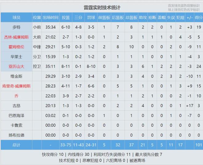 上賽季雷霆68勝14負,本賽季常規賽剛剛過半,他們已經輸了10場,恐怕連68勝都拿不到了。先來看看本場數據: