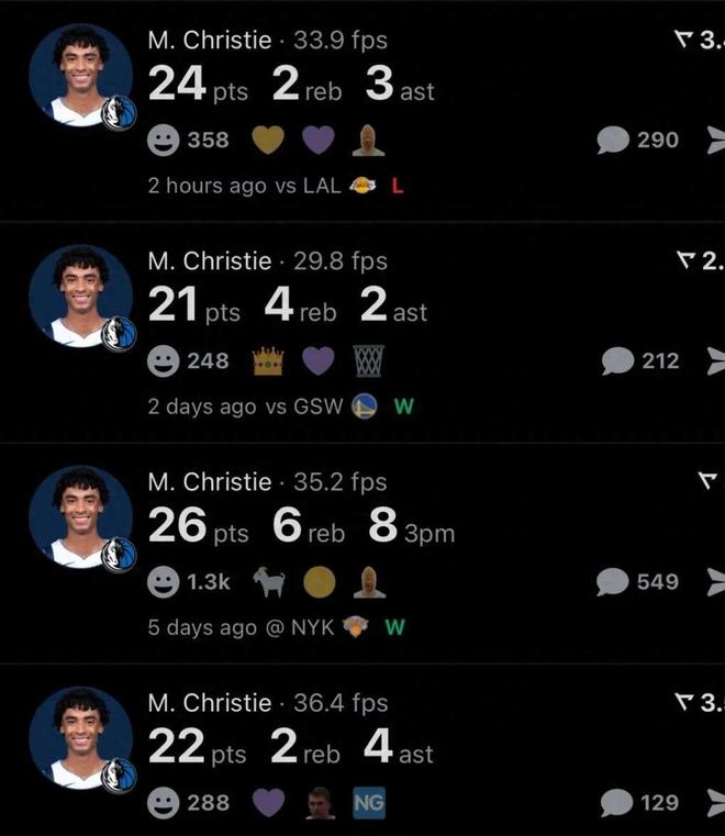 雖然球隊輸球,但對于獨行俠年輕球員克里斯蒂而言,這又是一場生涯之夜。