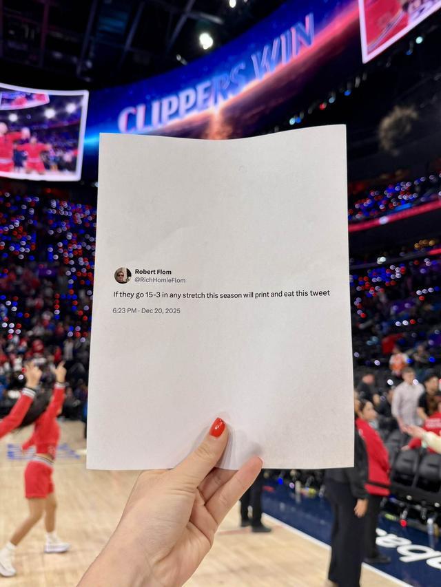 值得留意的是,此前有球迷在個(gè)人社交媒體聲稱,若快船能在本賽季任意階段獲得15勝3負(fù)的戰(zhàn)績,他會(huì)將這條推文打印出來吃掉。而在本場比賽結(jié)束后,這名球迷也在第一時(shí)間發(fā)推表示,自己將會(huì)直播履行承諾。
