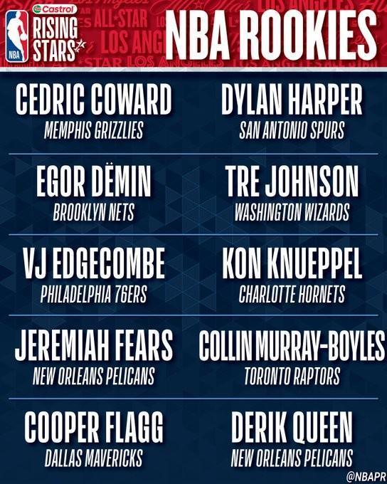 北京時間今日,NBA官方公布了本賽季全明星賽新秀賽名單,中國球員楊瀚森入選G聯賽隊,今年前四順位全部入選一年級隊,去年的狀元秀里薩謝落選二年級隊。