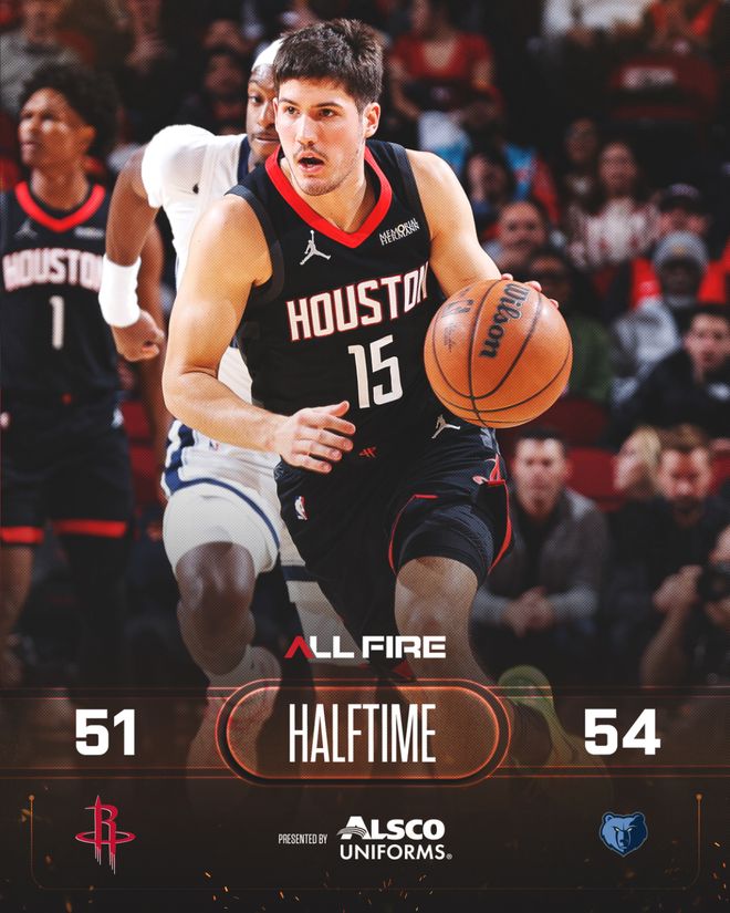 灰熊隊的杰克遜上半場得到11分,威爾斯和G-杰克遜各得到10分;火箭隊的申京得到14分,杜蘭特得到12分和7個籃板,伊森得到11分和4個籃板。