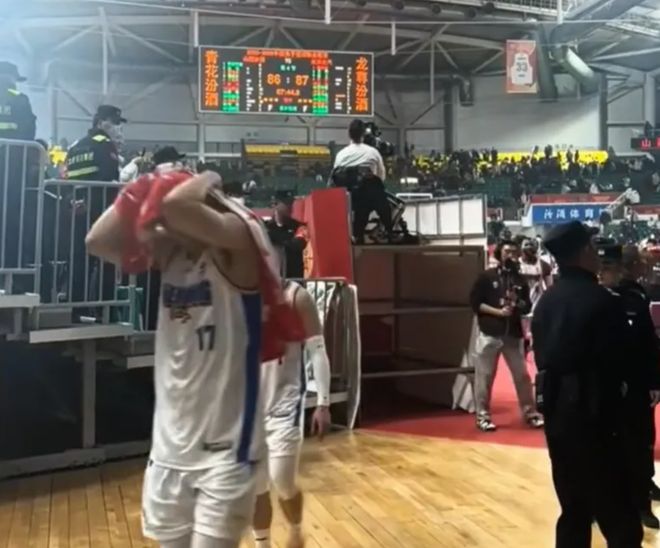 但本場比賽并沒有輕易結束,山西男籃的球迷還有更多的表現。賽后,北京男籃的球員往球員通道走,此時山西男籃主場的球迷開始沖他們吐口水,還吐到了北京男籃外援杰曼的頭上。