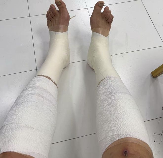 賽后媒體人“趙探長”曬出了一張翟曉川雙腿纏滿繃帶的照片,并表示:川隊這把是真拼了,北京北汽男籃隊長翟曉川兩條腿全拉傷,綁著繃帶打了20分鐘,幫球隊拿下一場不容易的客場勝利。