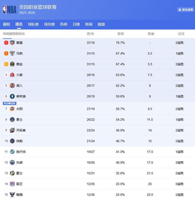 距離NBA25-26賽季全明星賽越來(lái)越近了,這也標(biāo)志著NBA常規(guī)賽逐漸開始進(jìn)入沖刺階段,各隊(duì)為了更好的排名和季后賽席位,開啟了更為激烈的爭(zhēng)奪,NBA排名也是因此在不斷發(fā)生變化!西部球隊(duì)?wèi)?zhàn)績(jī)咬的很死,排名在隨時(shí)發(fā)生變化,東部同樣競(jìng)爭(zhēng)激烈,現(xiàn)在咱們就一起看看NBA最新排名:西部4隊(duì)搶第2,快船沖前8,東部3隊(duì)打響第2追擊戰(zhàn)。