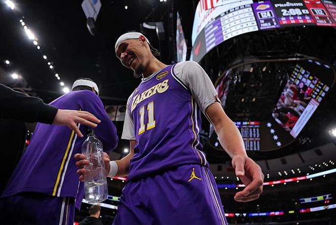 在此前的一場NBA常規(guī)賽中,洛杉磯湖人以129比118比較順利地戰(zhàn)勝了主場作戰(zhàn)的芝加哥公牛。本場比賽后,拿下了兩連勝的湖人的戰(zhàn)績提升到了28勝17負(fù),繼續(xù)排名西部第5位;而結(jié)束了4連勝的公牛的戰(zhàn)績則是下滑到了23勝23負(fù),繼續(xù)排名東部第9位,與身前的奧蘭多魔術(shù)的勝場差為半場,與身后的亞特蘭大老鷹的勝場差為1場。
