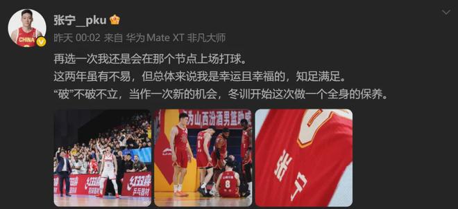 但張寧不這么想:“再選一次我還是會在那個節點上場打球。這兩年雖有不易,但總體來說我是幸運且幸福的,知足滿足。‘破’不破不立,當作一次新的機會,冬訓開始這次做一個全身的保養。”