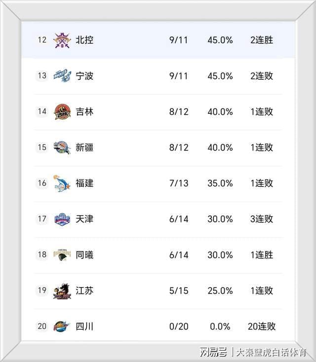 ③、遼寧上升2名來到第11位,四川依然一勝難求,賽季20連敗繼續墊底。