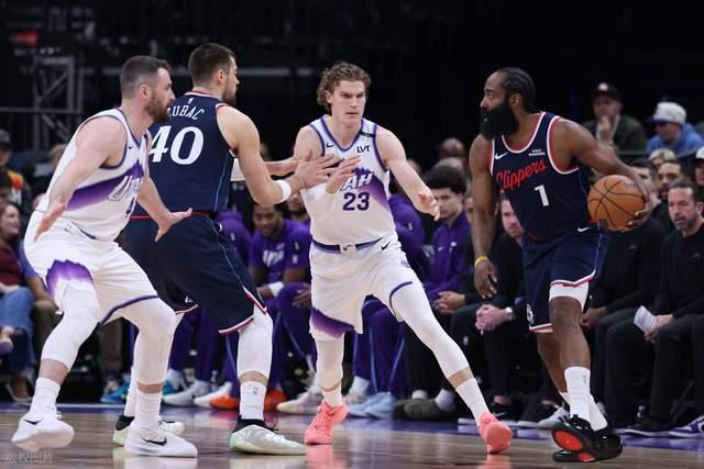 次節上來倫納德三分命中,隨后跳投也進,總算是找回手感,桑德森三分也進,倫納德又連續拿分,帶隊打出15-2攻勢反超比分。貝利三分命中止血,大洛佩斯三分也進,兩隊陷入拉鋸戰,爵士這邊慢慢又占據主動,馬爾卡寧站出來接連拿分,還在防守端大帽哈登。隨后哈登連續命中2記三分止血,突破拋投也進,鄧恩扣籃得手,快船再次反超比分,最后貝利命中壓哨三分,半場打完快船53-54落后爵士。