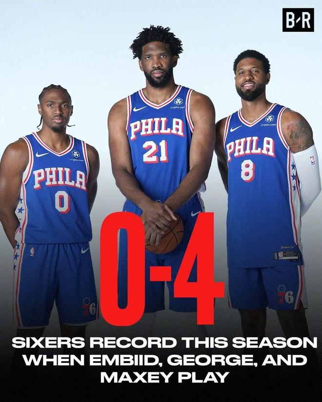 0勝4負戰績尤為刺眼,刺得三位老哥痛定思痛,在那之后合體贏球率遠高半數。不過大多數時候都是馬克西與恩比德爆分,也該到喬治爆一場了。