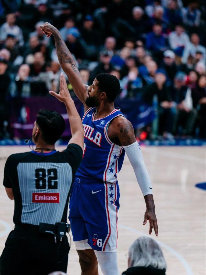 三人同時在場時候,喬治完全起到一個底角裝飾的作用,比賽影響能力完全不如恩比德和馬克西。場均15.4分5.3板3.6助的數據,更讓喬治有一種邊緣感。