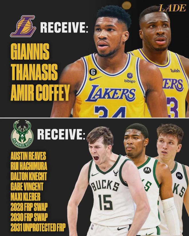 湖人送出里夫斯、八村塁、克內克特、文森特、克萊伯、2個首輪簽互換權和1個無保護的首輪簽,從雄鹿得到字母哥、字母大哥和科菲。