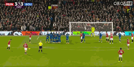 第77分鐘,曼聯前場定位球機會,B費主罰直接轟出世界波,曼聯3比3扳平。