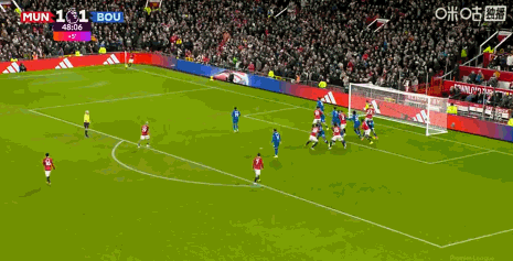 第45+4分鐘,曼聯左側角球機會,B費主罰開到后點,卡塞米羅搶點頭槌破門,曼聯2比1再次領先。