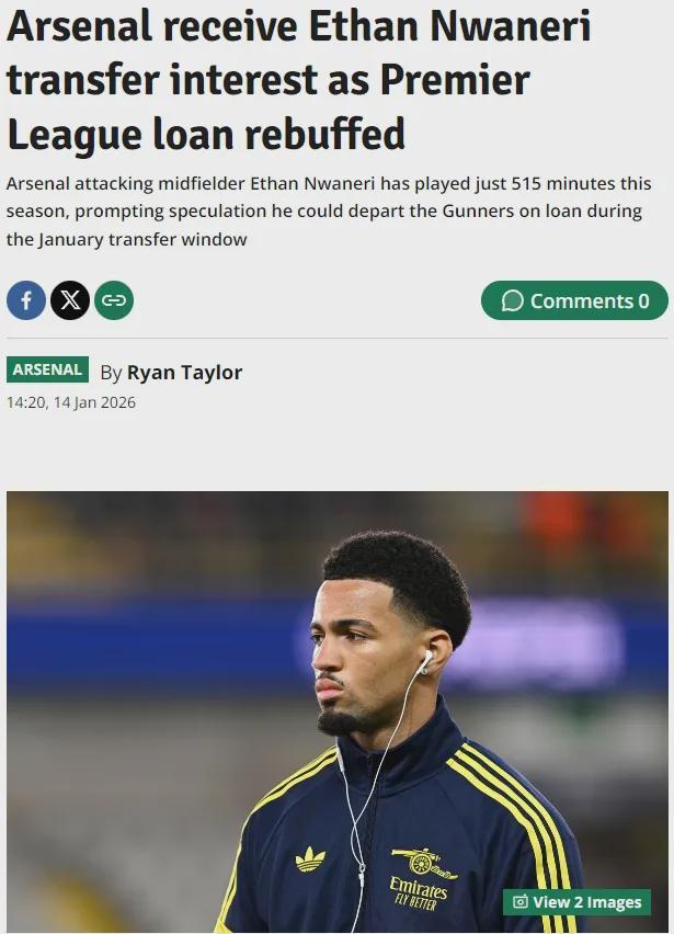 鏡報和倫敦足球記者RT發文表示,西漢姆等俱樂部本月已經對恩瓦內里展示出了興趣,但迄今為止都遭到了阿森納的拒絕。