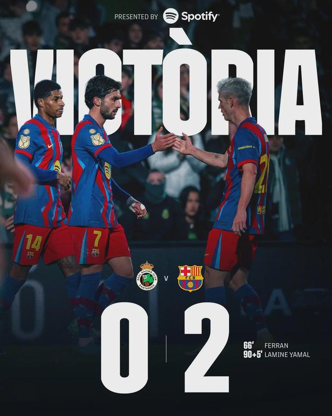 錯失扳平良機的桑坦德競技很快受到懲罰,亞馬爾在補時第5分鐘的進球徹底終結了比賽懸念。