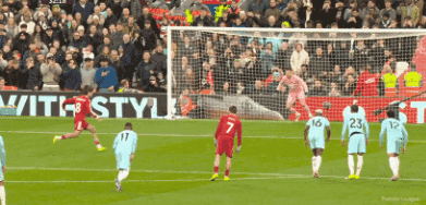 狀態神勇的伯恩利門將,在第34分鐘和第36分鐘連續撲出了加克波和維爾茨極具威脅的打門,不過攻勢不減的利物浦,還是在半場結束前打破了場上的平衡,埃基蒂克左路強突,造成對手禁區內一片混亂,維爾茨爆射破門,幫助利物浦帶著1-0的比分,回到了中場更衣室。