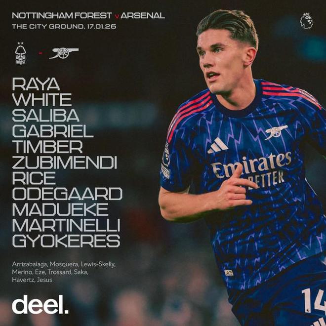 阿森納客戰(zhàn)諾丁漢森林:哲凱賴(lài)什、馬丁內(nèi)利、馬杜埃凱首發(fā)