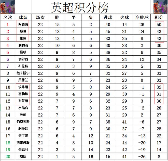 積分榜方面,阿森納現在的冠軍相是愈發明顯了,他們本輪在客場爆冷被保級弱旅諾丁漢森林逼平,然而兩個追趕者都未能追上來,曼城在德比大戰中輸給曼聯,維拉則是在主場輸給了埃弗頓,這樣的話本輪阿森納反而是比上輪擴大了1分的領先優勢,領先曼城和維拉7分。布萊頓今天無力贏球,絕平拿到1分,也就無力超過富勒姆和埃弗頓沖進上半區。